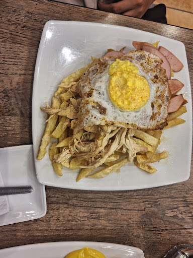Para ser un lugar que constantemente esta lleno escatiman en personal, en ingredientes y menaje y eso hace que sea un restaurante cualquiera y por ende su comida no vale lo que cobran. Pedí un chicharrón y estaba ultra seco porque era recalentado, un chocolate que demoraron en darme y no era porque lo preparan al instante lo sé porque el chocolate no estaba diluido totalmente, con el tiempo que demoraron el chocolate perfectamente se hubiera diluido por completo, además era un chocolate grumoso lo que significa que era un chocolate barato. Pedí un filete de pollo a la pizzarola, también demoraron bastante por gusto porque el queso no se derritió y fácilmente podías separar el jamón con el queso y el queso del pollo, el filete súper delgado como el queso del pan con queso que vende cualquier emolientera. La ensalada sucia y con verduras reposadas porque la lechuga tenía pedazos de moho. La ensalada en el mismo plato que el plato principal no habría problema si el plato no fuera muy pequeño, lo rescatable de este lugar pero no por eso bueno los sandwich (excepto el que lleva chicharrón claro esta). No cuenta con seguridad por lo que en cualquier momento puede entrar un loco de la calle a incomodarte, me pasó, o un vendedor ambulante. No son rigurosos con la limpieza...