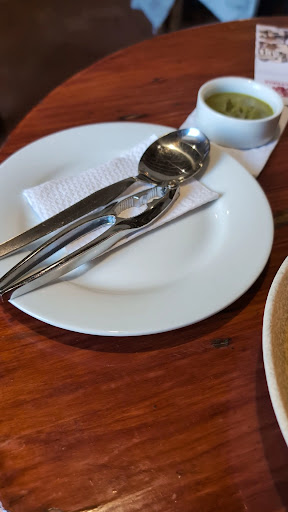 Por fim, quando o garçom me explicou como era este prato, informou-me que os camarões viriam sem casca. Os camarões na sopa estavam com casca, o que contradisse a explicação do garçom. Questionei sobre os camarões virem com casca e o prato retornou a cozinha para que os camarões fossem descascados. Ao retornar o prato estava mais fácil de digerir, mas as garras que ainda haviam no prato (umas 2 ou 3) foram descartadas e não foram quebradas na cozinha, pois ao consumir o restante do prato não encontrei a carne característica de dentro das garras.