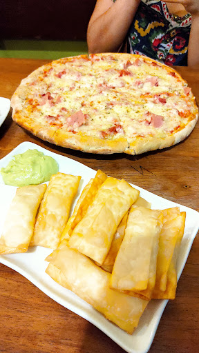 No me dio tiempo de tomar más fotos porque estábamos hambrientos y realmente queríamos comer, pero sin duda esta es una muy buena opción para compartir una pizza, una sopa bien servida,nosotros pedimos la pizza de las 4 estaciones bastante interesante, pedimos una orden de mollejas para compartir y también un calzón de jamón con cebolla que fue ufff, delicioso, me sorprendió que la pasta y todo es 100% casera. La chica que nos atendió siempre estuvo atenta, muy amable, y muy alegre. Fue un goce venir a este restaurante. Si buscas opciones como pizza, vino y pasta este lugar es bastante agradable para venir aquí, de entrada hace bastante calor sin embargo es soportable y siempre puedes pedir una bebida refrescante, la comida esta muy buena. Vale la pena. 10/10