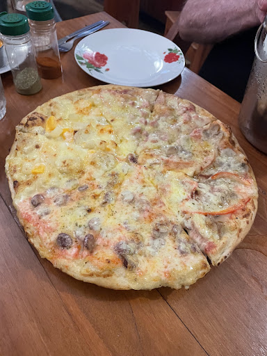 Read moreLa pizza especial personal (no recuerdo bien el precio, creo S/24) y la pizza 4 sabores grandes (S/60) muy ricas...para mí gusto le faltó un poquito más de sal. Los insumos muy buenos. Te sirven con 2 salcitas : mayonesa y ají (me gusta el picante entonces puedo decir que la salsa no era picante). Hay ventilación, sí. El ambiente es cálido. No había bulla aunque un tv estaba encendido. El refresco de camu camu estaba muy muy dulce, entonces pedimos 1 botella de agua para combinar. Todo el personal fue muy muy amable. Sí hay entrada para silla de rueda, sólo que es muy empinado, entonces bajar de retroceso con ayuda y cuidado. Sí...