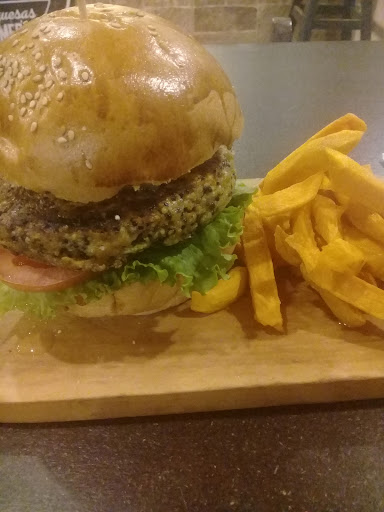 Read moreEl ambiente luce bastante bien, no hay incomodidad al permanecer en el lugar, y las personas que atienden son gentiles. Incomoda un poco la demora al servir si tienes cierta premura, pero también puede ser algo positivo dado que la comida llega fresca a la mesa. Ordené una hamburguesa vegetariana (de las varias que ofrecen) y debo admitir que, para ser la primera que probé, me agradó bastante, la presentación es impecable y novedosa. Un problema que surgió al pagar es que su POS no reconocía una tarjeta que dicen soportar, lo cual alargó un tanto el proceso de pago. Por último, algo que no me agradó fue que no ofrecen boletas (al parecer sí la expiden, ojo) como en variadas tiendas. Aparte de esos inconvenientes, debo admitir que ha sido una muy grata experiencia, sin lugar a dudas...