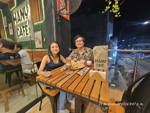 Read moreManu café está ubicado frente a la plaza de Armas de Pucallpa, cuenta con un lindo ambiente con buena decoración, tiene dos áreas una interna con aire acondicionado y una externa con terraza que permite disfrutar de una buena vista, la atención fue excelente el mesero muy atento siempre y con buena actitud,en lo que respecta a la comida y el café estubo bueno pero no exelente, el cappuccino estaba ligeramente mas fuerte de lo tradicional, y el tiramisú de café estaba bien, un buen sabor en boca pero nada especial y de consistencia ligeramente más dura de lo normal,tanto el capuccino como el tiramisú los he probado en varios paises por eso suelo ser exigente con su sabor, pero en términos generales todo estubo muy bien, es un lindo lugar para disfrutar de un buen café y un...