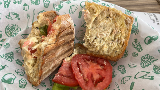 Es lamentable que la calidad de los productos haya decaído TANTO. Usualmente viajo a Lima 3 a 4 veces al año y solía tomar desayuno siempre aquí. Esta vez fue decepcionante. Pedimos 2 Ciabatas con Pollo (S/. 19 cada uno) y lo que nos trajeron fue un engaño. La imagen lo dirá todo.