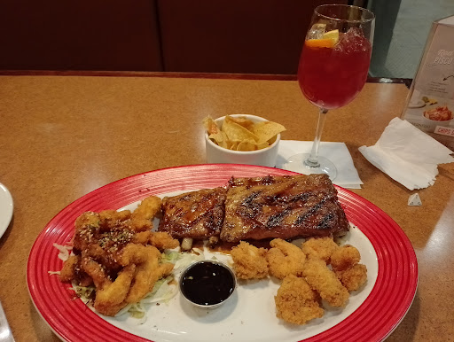 Cómo era mi primer comida aquí, me animé por un Clase Sample. Pollo crocante y jugoso, langostinos jugosos y que la salsa les caiga perfecto y las costillas, la que me decían que sería la mejor parte y lo que más se pide; fueron una ABSOLUTA DECEPCIÓN 🫤. Me dieron 2 cortes distintos, uno de ellos era un poco más pequeño y la cocción que le dieron lo hizo quedar absolutamente seco y desabrido, cuando lo probé no pude ocultar mi gesto de desagrado ante esto (el cuál llegó a ver uno de los meseros a la distancia pero no fue algo que les motivará para acercarse a la mesa), el otro costillar... No fue bien limpiado y tenía una porción grande de cebo y una pésima cocción, solo la parte externa tenía sabor. Se que se debe dejar algo de grasa para favorecer que la costilla quede jugosa, pero la cantidad de cebo puro que tenía mi comida era demasiada y una forma inapropiada de preparar unas costillas El comienzo de mi comida fue bueno pero las costillas realmente arruinaron mi experiencia y la poca atención que ponían los meseros para las 3 mesas que estaban ocupadas en ese momento, solo enfatizó el mal sabor de boca. No creo volver a ir, aunque la foto...
