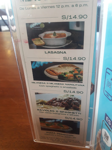 Read moreDecepcionado, en su lista del menú indica ravioles o spaguetti, pero al hacer el pedido me dicen que solo tienen lasagna , asi que mi deseo de probar los ravioles, será para otra oportunidad, seria ideal que lo saquen de la oferta del menu si no lo pueden atender, escogimos la lasagna , el personal debe saludar y ser mas empático, , limpieza del local 5/10 , temperatura de la comida, el plato estaba muy caliente casi no se podia tocar, la comida temperatura muy caliente por debajo y tibio por encima,5/10, sabor 7/10, relacion precio...