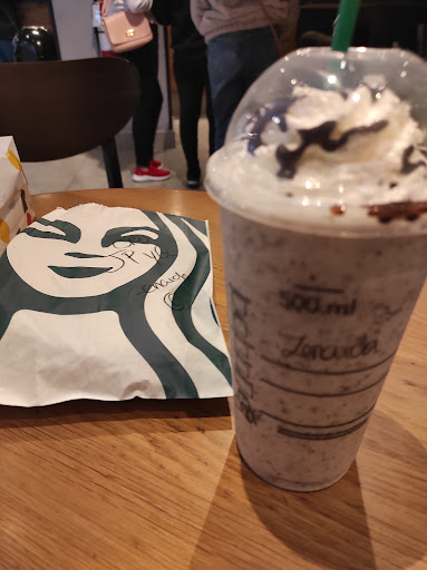 Read moreMuy buena atención de parte de los bartender . Es el Starbucks que más frecuento por la cercanía . Sugiero probar las bebidas de temporada y preguntar por su café del día . Un shotsito de café siempre es bueno n.n Recomendaría sacar su tarjeta de rewards y comenzar a juntar estrellas, esta tarjeta ofrece algunos beneficios como un café el dia de tu cumpleaños o un shot de café al mes. Aparte de cada 100 estrellas tener cualquier bebida gratis . Ideal para disfrutar de las bebidas de temporada que llegan un poco caras. Estar atento a sus redes sociales que suelen publicar días especiales dónde tus compras ganan el doble de estrellas . Por último sugiero no asistir en hora punta 7 8 pm por la aglomeración de personas . Un local más amplio sería ideal. Disfrute su café y endulce su día con...