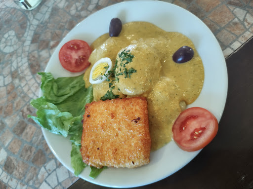 Read moreLa persona más amable es el chico del parqueo. Le pregunté por el precio de un ají de gallina que no aparecía en la pizarra de la entrada y me trajo la carta. La comida puede mejorar. Me cobraron un sol por el táper lo que me sorprendió porque aquí los platos superan los 30 soles y en otros lugares con precios similares te los dan gratis. Tiene un jardín muy bonito y bien cuidado al igual que los baños. Por último los mozos están en el salón principal sentados bromeando o conversando y eso le restó magia a la experiencia porque tuve que almorzar...
