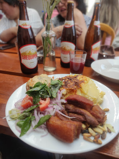 Servicio regular..... Comida pésima. .. pero en verdad las tías que venden comida en la calle donde cocinan cualquier fangollo es más rico que la comida ahí.... Nada que ver con la comida de antaño y mucho menos justificable el precio para dicho daño al paladar ....... Nunca pensé que la comida típica de Arequipa puede tener tan mal sabor después de tener toda una vida comiendo eso ...... Nunca en mi vida regresaría a dicho lugar ...... Es ma no lo pondría ni siquiera en posibles opciones a las cuales regresar en ningún futuro proximo, segundo la chicha es un crimen servirla verde, no tiene para nada buen sabor y ni una pizca de azúcar .... todo mal local muy cerrado y poca ventilación.... Atención desde la puerta aturden para que ingreses por la competencia con sus picanterias vecinas, atención del mozo buena pero no...