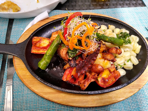 The place is beautiful, the service excellent, the drinks really good and the portions are large, BUT the food looks much better than it tastes! Considering all the great reviews I want to give this restaurant the benefit of the doubt: maybe we were just unlucky, but the octopus was extremely rubbery and chewy and the fried calamari really though. That's a shame because the restaurant has a lovely large shaded terrace and friendly service that creates a really nice vibe and make it a very pleasant place where to spend some time. The food, unfortunately, was a real let-down. Reading the menu and looking at all the plates coming out of the kitchen, we thought for sure we'd be back a couple of times to try many different dishes, but when the food arrived it was downright unpleasant. The cocktails were really good, as mentioned, but not enough to "save" the overall...