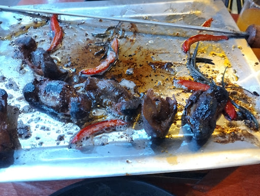 Llegue y todo el local lleno de pantallas con fútbol, a pesar de solo haber 4 mesas, pedí una parrilla potrero, demoró 35 minutos, pedí en término medio pero llegó todo sobrecocido, y las mollejitas quemadas , negras , amargaban mal. Las carnes vienen en una parrilla bañados en demasiado aceite y la brasa excesiva provoca que las carnes se quemen mientras esperas que traigan los platos.