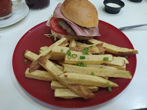 Lo malo: pedí algo simple felizmente, y para bien porque me sirvieron el chicharrón calentado, estaba demasiado duro, se notaba que lo habían tenido guardado algunos días porque fue muy complicado comer. la papa frita tenía aspecto verdoso y parecía que había absorbido el aceite, no eran nada agradables a la vista y mucho menos al gusto. pedí un capuccino para acompañar, tenía mal aspecto, el sabor era normal, nada destacable. el camote frito lo mismo, parecía guardado. Conclusión: pareciera que hubiesen metido el sándwich al microondas y de ahí a mi mesa. Terrible!! el local dice ser un café pero la decoración (colores usados en la decoración y pintura) no va acorde con la categoría, tiene aspecto de pollería (usa las combinaciones rojo y amarillo con frecuencia) o cualquier otro fast food. Deben definir eso bien el rubro al que pertenecen. Conclusión general: una muy mala experiencia, si estás considerando en acudir al restaurante ten en cuenta...