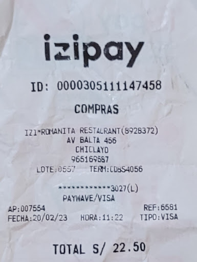The restaurant is famous in the area, as it should be serving real quality food. A few years back it was better. This is the second restaurant, a little smaller as the main Roman restaurant. The frech drink did not have the Chicha morada fruit taste. the meat is what you mostly see in the restaurants, quiet greasy. The amount of vegetables is limited, what more or less indicates the healthy level...
