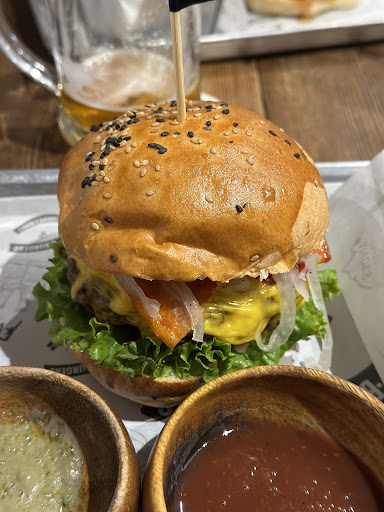 Beers and Burgers by Eusebio y Manolo offers a delightful dining experience in Cusco, making it a perfect spot for both casual diners and sports fans alike. We visited this place to catch a Real Madrid game, and it didn’t disappoint. The atmosphere is vibrant and friendly, ideal for enjoying a match. The burgers here are a real treat—juicy and well-seasoned, and the variety of craft beers is impressive, providing plenty of options to quench your thirst.