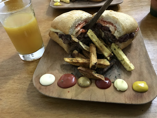 In this place, they have a few set burgers and can essentially build your own burger. We ate the triple alpaca and single chicken burger both with native fries and they were excellent. The meat was high quality and the burgers were stuffed with nice fresh salad. Soft drinks, burgers and a dessert for 85 soles.
