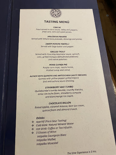 Read moreAs others have commented, I had high expectations going into this experience given the reputation of Gaston Acurio and my visit to his Miami restaurant a few years ago. Unfortunately my expectations were far from being met and hence the reason for only 1 star. The space itself is very nice, simple yet done in good taste. The service was not horrible but it seemed that the staff was always rushing and it was difficult to get their attention sometimes. Considering the brand and pricing, service should be very good. Atmosphere and service of a restaurant of this level can be ok but the food must be excellent. This was clearly not the case. Firstly, the portions were huge! Some may be ok with that but I believe the point of a high-end dining experience is to be able to enjoy several elements of your meal (at least a starter, main and dessert) to complete the experience. I also feel it's a waste of food unless you have a huge appetite and can finish everything! We only made it past a shared starter which was very good, half the main and no dessert. The waiter commented that their aim was to provide "well-served portions". They nailed that strategy but it was quantity over quality. My wife had the Rabo de Toro which is a beef stew cooked in wine. It was served lukewarm with an overwhelming taste of wine which should not be the case. Wine should enrich the flavors of the dish, not overpower. It was as if they had poured wine over the beef before serving. I had the pork belly which was bland and served with undercooked, lukewarm potatoes. I've read other reviews where the term "re-heated" was used to describe the food. This could be the case here. After 9 days in Peru visiting Lima, Urubamba and Cusco, this was the only disappointing meal. Peru is known for its great chefs and culinary expertise. This was the case at all restaurants we visited except Chicha even at lower...