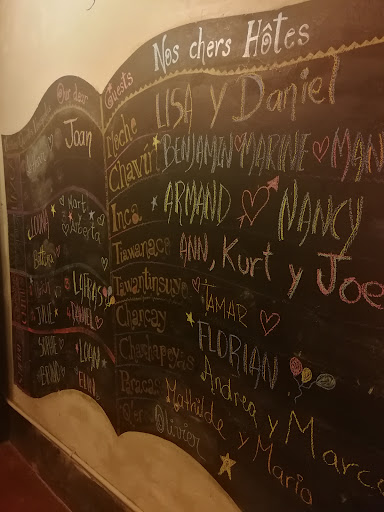 Read moreJe ne remercierai jamais assez notre ami franco-péruvien d'avoir réservé à la Bo'M. Car quatre jours après le début de notre voyage au Pérou, nous voilà en quarantaine à Cusco. Nous ne le savons pas encore mais notre séjour de deux jours et deux nuits est sur le point se muer en quatorzaine... 15 jours dans un hostel, à la Bo'M... Jamais je n'aurais cru autant aimer être confiné à l'autre bout de la planète... ||||Bon, mais commençons par la base. Au-delà de l'endroit super bien situé (à peine 5' de la Plaza de Armas et du mercado San Blas)...||||Nous avons d'abord testé les "dortoirs" - en réalité des chambres avec quatre lits, traditionnellement pour les backpackers - avant de passer en vraies chambres avec douche et toilettes :-). ||||Pour avoir testé les deux formules, il convient de dire que chacune offrait ce que l'on attendait d'elle. Première chose, dans les deux cas, les lits étaient confortables (passé le "soroche", on s'endort comme une masse, et sans avoir froid, ce qui n'est pas évident car en mars les nuits sont encore froides).||- Dans les dortoirs, une armoire verrouillable pour chacun, ainsi qu'une lampe, une prise de courant et de l'usb en tête de chaque lit ! Douches communes bien chaudes et toilettes propres.||- Dans les chambres, petite table de nuit. Une autre table avec chaise, et petite étagère (parfait pour stocker la nourriture). Serviette de bain et service de chambre régulier (trop régulier !! on n'avait pas besoin d'autant de nettoyage... mais bon, ça prouve quand même qu'ils font gaffe aux occupants qui restent plus longtemps !).||||Maintenant, les parties communes. Une belle salle à manger pour les petits déjeuners par ailleurs au top (amateurs de crêpes, pas besoin de plus pour vous ! Pour les autres, plein d'alternatives toutes plus gourmandes les unes que les autres, granola, œufs, etc. - produits frais, du marché - la propriétaire, Sarah, est très sensible à la qualité des produits !)||||D'ailleurs si on en parlait de la propriétaire ! La Bo'M est un havre de paix et de couleurs, à l'image de sa propriétaire qui a su nous gérer pendant deux semaines (trois pour certains moins chanceux que nous), nous prêter ses cuisines pour nous laisser une certaine autonomie, nous faire un rabais sur les chambres, faire le max pour nous informer sur de possibles retours... Nous ouvrir aussi l'espace normalement réservé au restaurant. Bref, elle a TOUT fait pour nous... Bon, ça c'est dit.||||La suite. La déco, donc, on se le disait tout à l'heure, toute en couleurs, mariant chanson française (Brel, Aznavour ... forcément, la bohème quoi :) et art indigène avec beaucoup de charme. Le lieu est organisé autour d'une cour intérieure, où il fait bon se prélasser au soleil dans l'un des deux hamacs... ou sur les chaises longues, sous les arbustes fleuris, des fleurs exotiques que viennent naturellement butiner un couple de colibris, et ce, toute la journée... Des oiseaux de paradis... Pas si étrange finalement, vu l'endroit... :)||||Et puis tout est là quand il pleut pour ne pas déprimer. Des jeux, DVD, une cheminée. On s'affale sur les banquettes, ou près du feu, le soir, pour discuter, autour de bières locales, de cidre ou de vin... Se rencontrer, échanger. L'ambiance est là, enrobée par les playlists musicales cocooning ou parfois plus couleur locale. Sarah et son équipe (Marie, Edward) ont toujours le sourire et se plient en douze (ouais, pas facile) pour qu'on soit bien. Et on est bien.||||Autre chose, la crêperie à l'étage, heureusement testée la veille du confinement, a su ravir le breton en moi... les galettes sont une tuerie (et je suis difficile).||||Allez, si vous avez lu cet avis jusqu'au bout, vous aurez compris qu'il n'y a pas à hésiter une seconde avant de réserver à la Bo'M... Si vous hésitez, eh bien peut-être n'êtes-vous pas fait pour le bonheur... à...