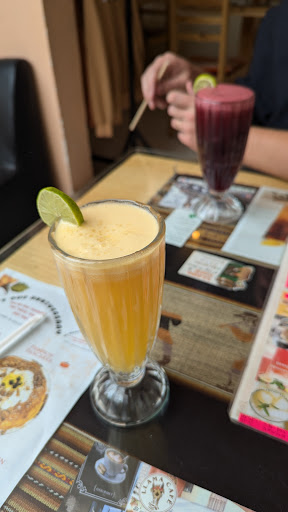 Loved this place! We went for breakfast and it was hands down one of the best breakfasts we've ever had anywhere. We got the dulce de leche crepes filled with strawberries and mangos (so fresh!), and huevos rancheros. It says the salsa is spicy, but it wasn't at all! More like a mild pico. It was delish. The meat was rotisserie chicken and my oh my mixed with the salsa and the eggs... soooooo good. We're definitely going back a couple more times while we're in Cusco because we can't get enough! We also got the blueberry lemonade and strawberry lemonade. We both agreed the strawberry was much better than the blueberry. Our entire meal incl drinks was just barely over $16USD....