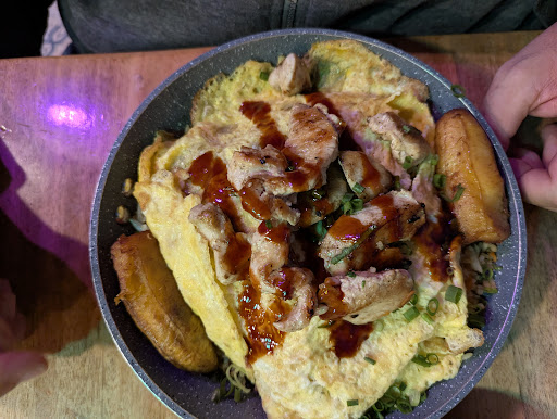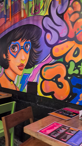 The atmosphere is electric, with highly colorful murals and streamers that instantly remind you of how bright the culture is here. Contemporary music blasts through the speakers as servers dance around each other carrying plates the size of mountains.