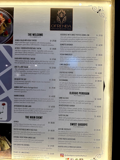 In April 2025, Ofrenda served craft beer from Mundo Quechua Cusco. We chose the Tayta IPA, intense hop flavours and aromas (25 Sol). Matched well with our food. For starters, we chose the warm quinoa salad with goat cheese (27 Sol), made with three types of quinoa with chestnut praline and peppers. The goat cheese with balsamic vinaigrette tomatoes had a rich taste and the accompanying salad was tasty. Nice starter. For the main course, we ordered the lomo saltado (55 Sol) beef tenderloin sautéed with vegetables accompanied by Andean potatoes, rice, avocado and a quail egg, presented in an original way with a small flower in the middle. The meat was well-done. The sautéed rice was hard and reheated before serving. Just fresh rice from a rice cooker is a better option. A small dessert with mint tea was offered by Francisco the waiter. He did a good job.