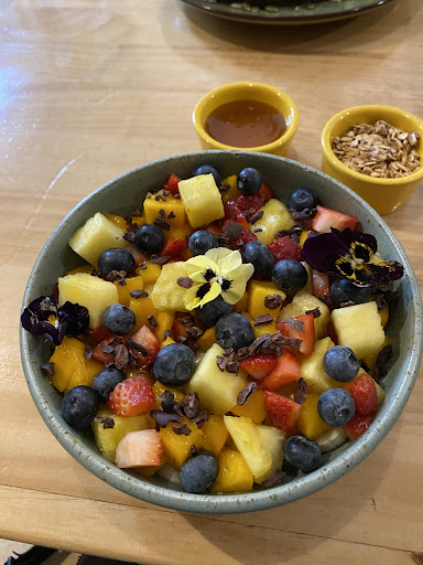 The portion was generous, and the fruits werenât chilled, which made the textures and flavors so much more enjoyable. It also came with a side of granola and honey, so you could add those if you wanted, but I didnât feel the need to use either. The avocado toast with trout and poached eggs was also incredible.