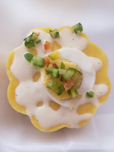 Tiene de carne y de pollo, y el costo de cada uno es de 7 soles. Siempre acompañado de su limón y un rocoto picado picante que hacen una combinación perfecta. Además también ofrecen causa rellena y bebidas como chicha morada, café y gaseosa.