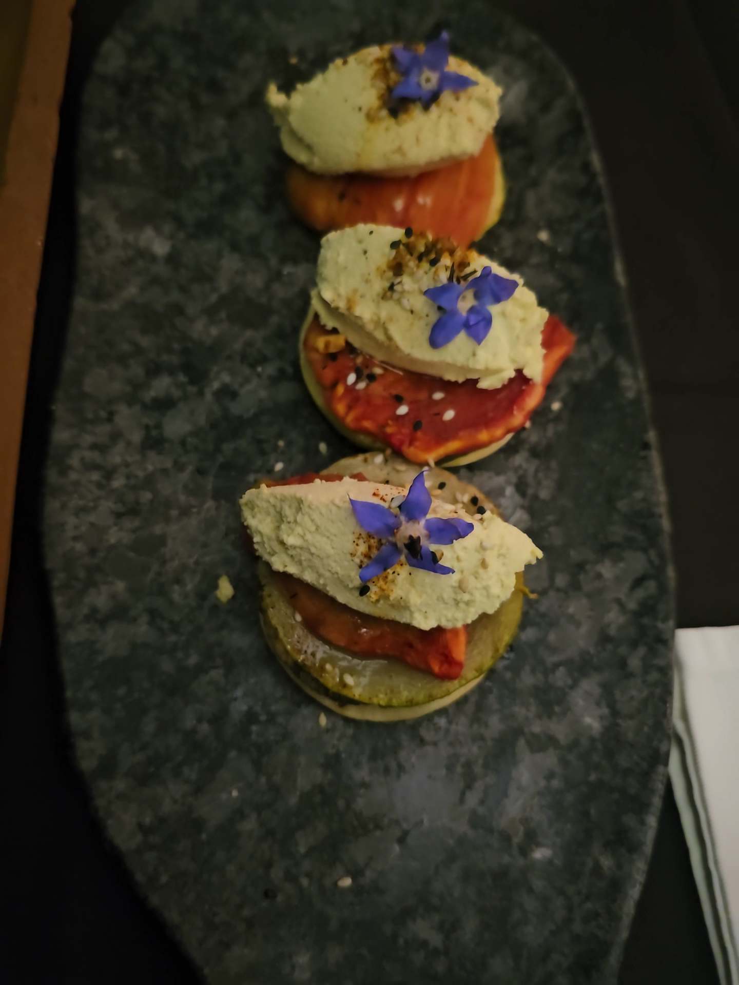 The musical ambiance was tastefully curated, never intrusive, allowing for an enjoyable conversation. The amiable waitstaff added a personal touch, enhancing the overall hospitality. The server's detailed descriptions of each dish upon presentation were commendable, providing insight into the culinary artistry.