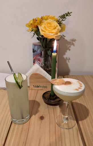 Read moreVida vegan bistro is quite literally a hole in the wall with only 6 seats in the middle, the kitchen in the front, and a bathroom in the back. I went in with my family so we had 5 people total but this restaurant was a great place to hang out for a bit with some provided games on the table. We ordered a lot of food (I wish I had more pictures) but everything was absolutely delicious. We ordered a pisco punch, a maraquya sour, the 3 flavor causa (pictured) with the saltado sandwich, saltado plate, and mushroom ceviche. The saltado had amazingly textured savory seitan, and the mushroom ceviche came with fresh oyster mushrooms that tasted out of this world. The Leche de Tigre that was in the ceviche was incredible and tasted so authentic. The man that ran the restaurant was so friendly and welcoming answering our questions and not getting overwhelmed by our orders. You can definitely feel the love that is put...