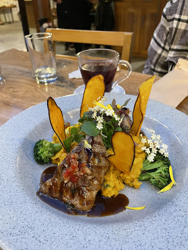 Read moreThis restaurant was super close by our hotel so we decided to pop in for our first dinner in Cusco. First off, the presentation is absolutely beautiful!! Every plate looked like like an art piece! We got the tiradito, which was a sashimi style trout with some ago & sweet potato purée, and the roasted veggies as appetizers. The veggies were alright, not much to say about them but we enjoyed the tiradito so much! It sounded delicious on the menu and we were so surprised by the plating, it tasted so fresh and a perfect melange of flavours. For our main, we got the alpaca steak. It honestly tasted like beef except a bit more gamey and a lil tougher to chew but nevertheless very yummy, they put it on a plate of sweet potatoes! For dessert we got the chocolate cake and hot chocolate + mulled wine for drinks. The hot chocolate was more herbal than I expected but my boyfriend loved it! The service was also impeccable, so welcoming and accommodating. Prices were reasonable and everything was an absolute pleasure. It was a lil chilly in the evening so they put hot charcoal rocks in a pot next to us and I even saw them offer blankets to other guests! I would recommend this restaurant to anyone who’s...
