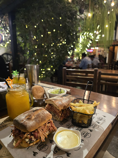 La fachada es super sencilla una puerta de doble ala, redondeada en la parte superior, una amplia entrada muy decorada a lo antaño con muchos detalles de plantas en macetas y adornos como calderos antiguos a leña para dar calor al ambiente. La atención me agradó a pesar que estaban atareados mucha gente pero bien acomodada. Al ver los platillos venir a otras mesas, ya nos antojaba y el paladar lo deseaba. Muy buena presentación de los platos, el costo vs la cantidad en lo justo y más aún el sabor muy delicioso 😋 todo, las bebidas super refrescantes y las bebidas como cócteles espectacular, recomiendo el cóctel 🍸 de la casa 😎.