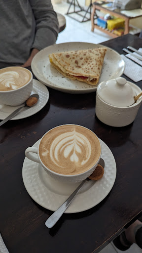 Really great breakfast spot! I went with a sweet crepe (Nutella w/ strawberries) and my partner went savory (Eggs, bacon, tomato, and onion). We both loved each of ours and the cappuccinos were great. The little cookie that comes with the cappuccino is great too...a little coconut-y which we hadn't experienced yet.