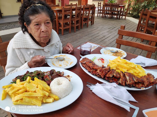 Read moreRecomendado el costillar a la BBQ acompañado de papas fritas y chancho al palo (crocantito) que se acompaña con camote frito y sarza de cebolla, ambos sales con si encurtido de nabo y carapulcra (no tiene mucho condimento, pero si picaba un poco, para los que no acostumbramos comer con tanto ají), hay juegos para niños ( saltarines, casitas de plástico), los costos acorde precio y calidad, la media porción aparenta que no te llenará pero si es suficiente para alguien de buen apetito. Respecto al ambiente puedo decir que todo muy amplio, solo que las moscas nos tuvieron en suspenso, aún así se metieron en 2 vasos. Creo que es parte de comer al aire libre, seria perfecto sino estuvieran...