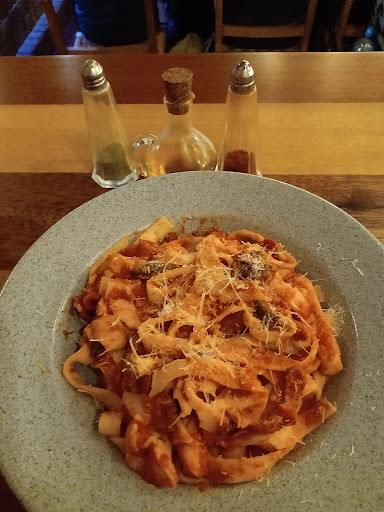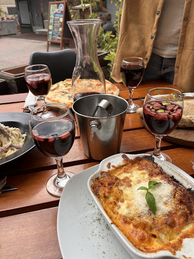 We ordered pasta carbonara and 2 pizzas. The carbonara was not too bad nor the best we have ever eaten but by the time the pizzas arrived they were long gone. We waited for 45 minutes for the most average pizzas we have ever witnessed. Not only was the cheese was just awful and tasteless cheap brand, the meat on top of the pizza was undercooked! Literally inedible. After pointing it out to the waiter that the pizza we waited more than 45 minutes for in an empty restaurant that we were the knot costumers, he got mad at us for not thinking of the cook who “worked hard” to make this disgrace of a pizza after neglecting to eat it and asking for a refund. Spare yourselves and don’t go in into a clearly red flag empty restaurant during rush hour.