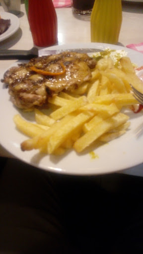 Read morewe had half of chicken with fries, it was a big portion, really tasty and came with a lot of different sauces to choose from. marakuya juice was also good. and all that cost...