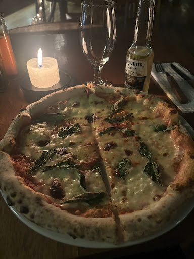 Finding this restaurant can be quite challenging as it's hidden deep within an alley. However, once inside, you'll discover a spacious area with both a garden and a dining section covered by glass walls. The menu isn't extensive, and the restaurant itself is quite large, bustling with activity, especially around the sizable pizza kitchen.