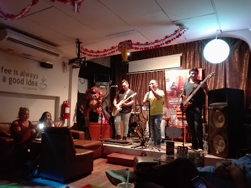 Read moreEs la segunda vez que voy a este bello lugar. Personalmente no gusto del café pero este lugar, ofrece además, dulces, kekes y tortas, tragos y frappé (recomendable el de oreo y turrón), por lo que su carta es variada y a precios cómodos (personalmente lo veo como un Starbucks). Consta de dos pisos, el primero es un espacio regular con muebles acogedores en donde puede uno conversar amenamente con la música de fondo que hay en el segundo piso. Está muy iluminado y muy bien ambientado con imágenes y adornos típicos de la región. Tiene asientos cerca a la barra, de esos que giran y cerca a la puerta,una pequeña escalera que nos lleva al segundo piso, que es en donde está la magia. El segundo, es un ambiente con luces de color y se puede disfrutar de música en vivo, depende del día es que varía elt Tipo de música pero yo fui cuando tocaban rock. En cuanto a la atención, antes la dos veces que he ido, me ha atendido muy bien, respetuosos, muy amables y tienen tino para tomar tu orden, así como para traer tupedio, son alegres y atentos de que no te falte nada y tú estadía sea la más placentera. En conclusión es un bello lugar nocturno en la hermosa.osa ciudad de Iquitos, atienden hasta las 11pm y el parqueadero es en la misma calle. Volvería? Claro que sí!! Cada vez que voy me doy el tiempo de disfrutar...