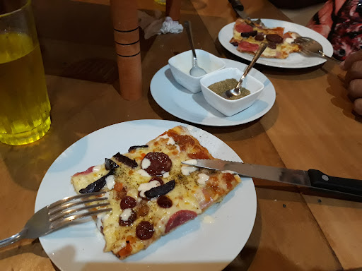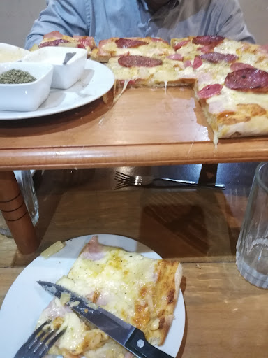 El lugar es pequeño pero no esta mal... Las pizzas son muy buenas hay variedad, don cuadras y de masa fina las porciones son generosas, pedimos una mediana para comer dos personas y no pudimos acabar... Tienen la opción de poner reemplazar la salsa normal de tomate por una salsa blanca que ni la chica que atiende supo explicar en qué consistía esa salsa blanca, pero ella misma dijo que era horrible y nada revomendable, asi que...