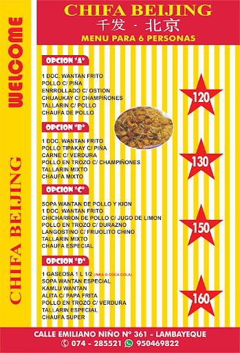 Read moreEn los 6 meses que llevamos viviendo en Lambayeque, esta es la mejor opción de Chifa en Lambayeque. Los platos se preparan rápido y la atención es buena. El cocinero es oriental! Y los platos van bien servidos! Les comparto la carta...
