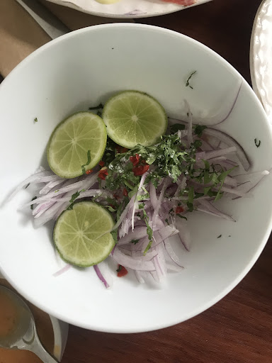The food here is top notch. As soon as you walk in you can smell the quality. The smells instantly transport you to the kitchen of someone's Peruvian grandparents where someone who loves you has been hard at work all day cooking you something delicious. I wish i could remember the names of every dish we had but i can't and we were so hungry i didn't even get photos of most. We started with a potato smothered in two types of yellow sauce. Followed by a squid ceviche that was so good i ended up eating half even though i don't normally eat squid. We ended the lunch with a stew of beef lung and potato, and a pork rib stew with peanut. The refresco of maracuya was...