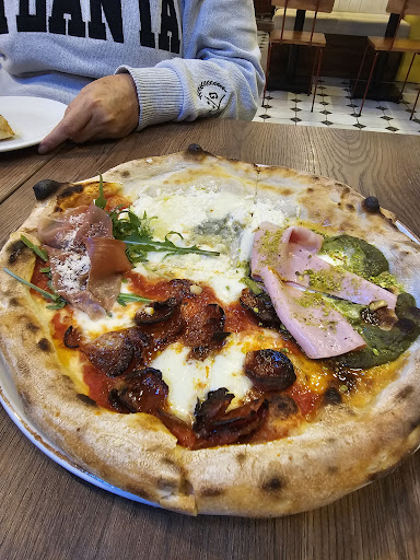 First, when entering the restaurant the staff seemed annoyed by our presence. I think we were the first costumers of the night. We got a table in front of the bar, behind it about 4 people from the staff were staring at us and we got a bit uncomfortable. So we changed to the tables outside. It was nice but the traffic noise made it quite stressful. We ordered a burrata, which was ok, it lacked a little of seasoning. The bread sticks that came together were delicious. The pizzas we ordered looked amazing, and the dough really stands out. Very good levained dough. But the toppings didn't work very well. It was too heavy, quite fatty, making the pizza dough soggy with the grease. We ordered a lemonade and it was terrible, tasted like powdered juice. The prices are definitely high for the quality and atmosphere of...
