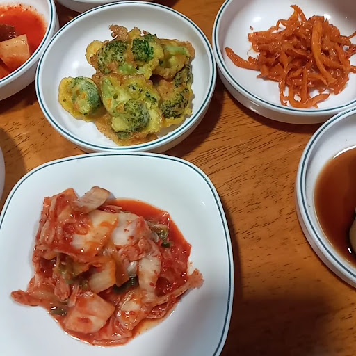 Hay muchos platos de acompañamiento, arroz, espinacas, frijol negro, hongos varios, tubérculos y vegetales, y por supuesto el famoso "Kimchi". Este último lo percibí como una ensalada con aderezo, un poco dominante un sabor parecido al ajo y a la cebolla, sin embargo asienta muy fresco, incluso como para acompañar un buen taco de bistec.