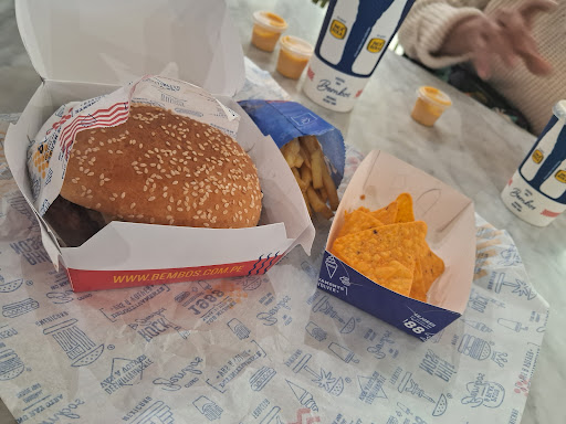 Fui a Bembos con mi familia a comer una hamburguesas. La atención fue coordial y amable a la hora de recepcionar y despachar mi pedido. No obstante, tiene que estar pendientes de su pedido debido a que puede que este listo y el personal se distraiga un poco a la hora de llamarlo y piede que se enfrie su comida. Con respecto a la comida pedi 2 hamburguesas grandes, una fue la mexicana y la otra clasica. La hamburguesa sola me salio 24 soles y la otra con combo completo de 30 soles mas o menos. La mexicana no estuvo mal pero no esperes un guacamole fresco y cremoso con bastante porcentaje hecho de palta. Senti la salsa miy grasosa como para que sea solo aguacate aplastado. Por otro lado, los doritos te permiten separarlos pero normalmente sale dentro de la hamburguesa. Dejando eso de lado en cuanto a sabor 7 de 10. Textura 8 de 10. Frescura 8 de 10. Son 200 gramos de carne supuestamente y debes pedir un poco de sal porque la hamburguesa pierde gran parte de esta cuando sus jugos caen en la brasa. La hamburguesa clasica mismo puntaje y más recomendable si quieres algo no tan grasoso. Las papas estuvieron frescas y crocante. Por ultimo, el lugar es un patio de comida. No puedo decir más. Si lo comparas con el precio de otras hamburguesas de otros establecimientos y en cuanto a tamaño/calidad esta bien. Esta experiencia fue cuando la demanda del lugar era baja. Puede ser que cambie con variaciones en la...