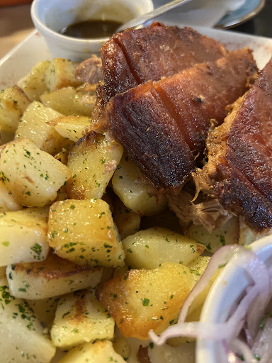 ……… Excelente comida y variedad de platos, tienen varios tipos de guarniciones (si te gusta el crujiente de las papas fritas pero quieres algo más saludable sus papitas a las finas hierbas son ese punto medio). Sus morcillas siempre salen crujientes Afuera y cremosas por dentro. La atención también es agradable.