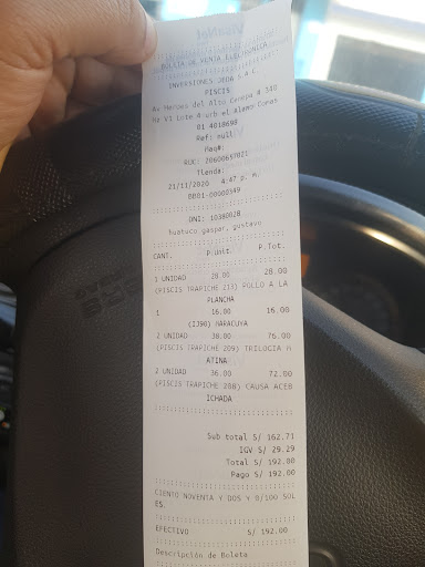 Aunque no había mucha gente, el sevicio de mozo, toma de pedido y entrega de cuenta demoró. Tiene una pecera con 4 peces que dan pena, solo agua y arena sin ninguna de decoración, a pesar de que de él restaurante se llame piscis. -El baño estuvo muy sucio hasta que me retire. Se demoran en levantar los platos usados/terminados de las mesas aledañas dando mal aspecto.