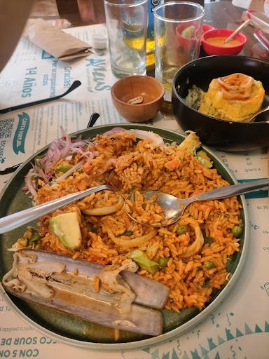Read moreLa comida mas horrible que pueda existir. Pedi un arroz con mariscos que en realidad era arroz con aji y un par de mariscos, sin sabor, asqueroso e incomible tuvimos que dejar el plato a medias. La causa mas seca y fria, se sentía insípida. Si quieren gastar su plata por las puras vengan. No lo recomiendo a nadie. Un asco de comida. Lo unico rescatable son los meseros que son amables en general pero de que sirve si la comida es incomible y desabrida, al igual que la musica que...