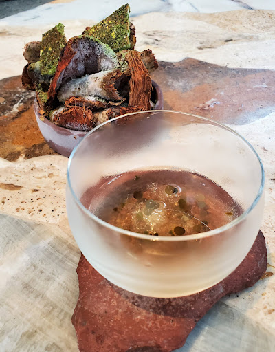 I love that the artisanal spoons are delivered between courses in pocket rocks, and I love the waiter’s suggestion on how to eat: “Use this spoon, carved by hand from a fallen piece of Amazonian wood."