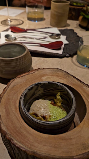Read moreThe concept here is very cool. The restaurant boasts an exquisite blend of textures and shapes and color. The materials they use are each unique, nature themed, and asymmetrical. I enjoyed the spa like music, which gave off a sensation of weightless aquatic bliss.