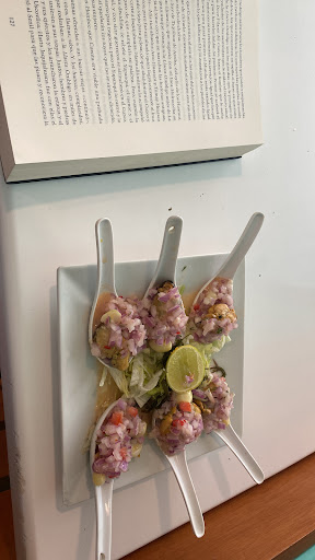 Read moreTiene una amplia y muy variada carta de platos de pescados y de mariscos. Es más que todo un restaurante cevichería. Muy buena atención, además que el ambiente es súper agradable!! Sus platillos son súper ricos!!! Me encanta la leche de tigre de ahí y el concentrado de pescado! Si vas al inicio te dan un tazón pequeño de concentrado como "cariñito" y también canchita con chifles!!!! Lo recomiendo totalmente ! Aparte es el mismo dueño el que se encarga de la cocina, por lo cual, te asegura que los platos siempre serán servidos 10/10. Y cuando te vas tienen ahí a disposición en caja unos caramelitos de menta para que no te vayas con mal olor en la boca que suele dejar la...