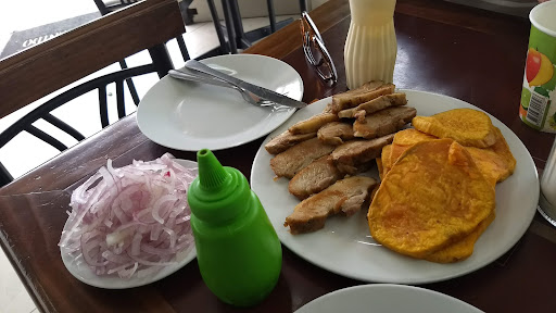Un nuevo local frente al parque de la Amistad, con un mejor local que todos los otros locales, mesas de mármol, sin pantallas, un buen lugar para conversar y por supuesto disfrutar un riquisisisisimo chicharron, acompañado de una buena taza de café pasado, este local es de otro nivel, deja muy lejos al antiguo local, que se encuentra a solo 2 cuadras, pequeñito, pero con la misma calidad sabor y olor,El chicharrón de chancho es un plato muy popular en Perú y en otros países de América Latina. Se trata de carne de cerdo frita hasta quedar crujiente, usualmente acompañada de mote, camote, y salsa criolla. La combinación de la carne jugosa con la piel crujiente es una de las características más apreciadas del chicharrón. La carne de cerdo se corta en trozos y se sazona con sal y, a veces, con otros condimentos. Luego se fríe en su propia grasa hasta que esté bien dorada y crujiente.En Perú, el chicharrón de chancho a menudo se sirve con mote (maíz hervido), camote frito, y salsa criolla, que es una mezcla de cebolla roja, ají, cilantro, y jugo de limón. Hay variaciones en la preparación y los acompañamientos según la región. Por ejemplo, en la sierra se puede acompañar con papas y en la costa con yuca frita. Es un plato típico de los desayunos y almuerzos en Perú, y se puede encontrar en mercados, ferias y restaurantes.El chicharrón de chancho es parte importante de la gastronomía peruana y se consume especialmente en...