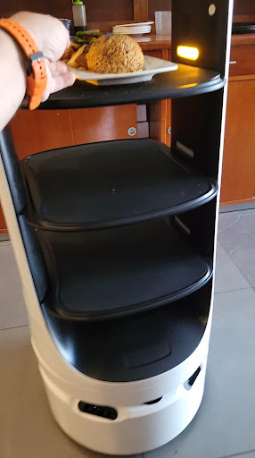 Read morebuena comida, super sabrosa, me pedí tallarines taypa pero me vino más pollo q nada jaja pero super sabrosa y exquisita la comida, tardo un poco en llegar 🥲🥲 la sopa muy rica también excelente servicio y cabe mencionar q no hay meseros solo hay robots q traen la comida jajaj buena experiencia si...