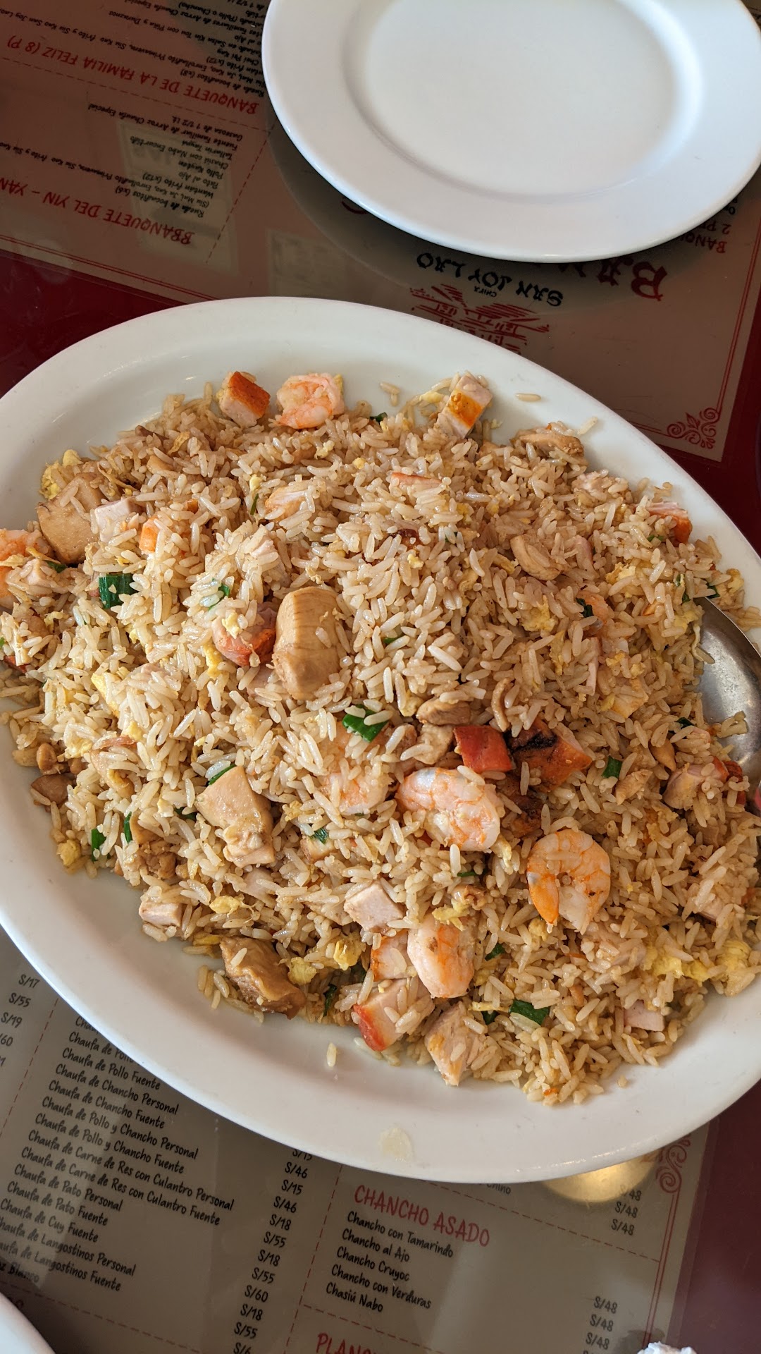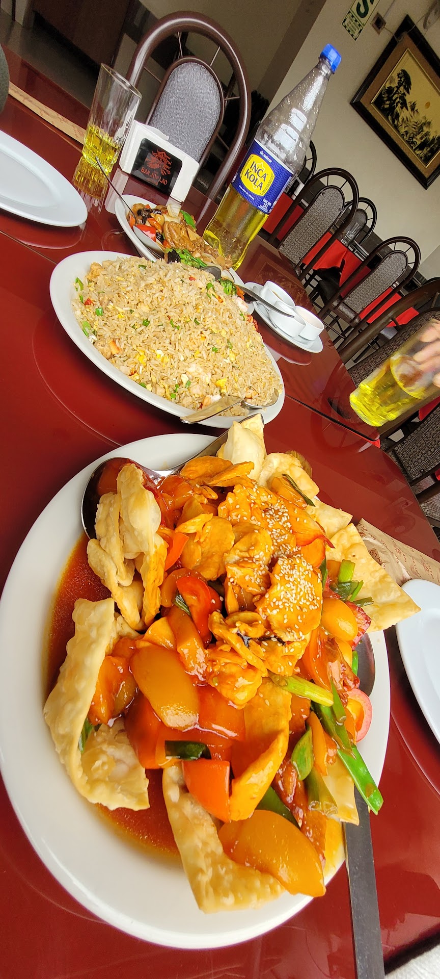 Read moreComo estaba por Surco con mi familia, acudimos al San Joy Lao de Caminos del Inca, nos sorprendió encontrar la marca en éste distrito ya que no lo frecuentamos seguido. Demoraron en traer la comida como 12 minutos, pedimos una fuente de Arroz Chaufa Especial (pollo/chancho asado y langostinos), Kam Lu Wantán y Pollo en Trozos en Salsa de Ostión. Los 3 platos de muy buen sabor, buena consistencia de las salsas, punto exacto de sal y dulzor, el chaufa estaba sabroso. Pedimos también una porción de Nabo Encurtido (lo traen en un plato sopero pequeño pero lleno) y Salsa Hoisin; también, y de cortesía te traen sillao, salsa de ají y salsa tamarindo. Los sabores respetan la tradición de la marca,(ya que hemos ido varias veces al San Joy Lao de la Calle Capón), los precios ligeramente elevados pero son muy buenas porciones (eramos 3 personas y nos llevamos comida a casa). Lo atención es muy buena y amable, los mozos siempre atentos y sonriéndo al atenderte. Lo único que mejoraría sería la decoración interna del local. Siendo un Chifa de mucha tradición en Lima debería verse como tal, las mesas no tienen ninguna decoración, las paredes carecen de decoraciones llamativas acostumbradas en los Chifas (no era un lugar cálido y acogedor), las cartas son un cartón plastificado como en cadenas de fast food (lo cual no va de acorde al rubro ni a su tradición). Si estoy por Surco nuevamente y se me antoja Chifa, de...
